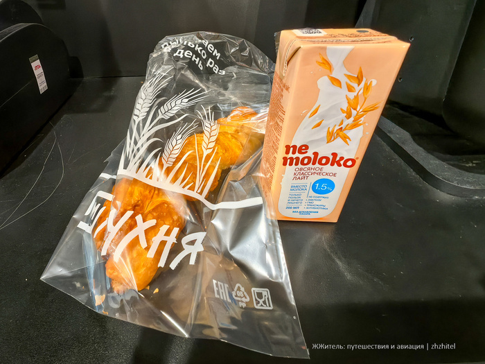 Отдельным чеком взял косичку с картофелем и мясом и «не молоко». Выпечка хорошая и сытная, напиток весьма на любителя.
