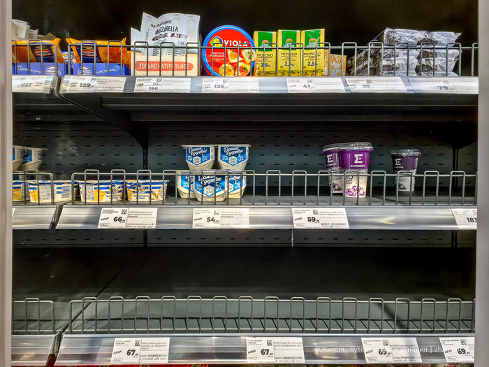 Молочку почти всю раскупили. Я бы взял йогурт или «Снежок».