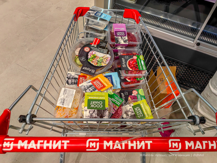 Под этим снимком можно было бы написать, что пассажиры и сотрудники на радости набирают полные тележки еды, но нет. Это привезли пополнить запасы на полках.