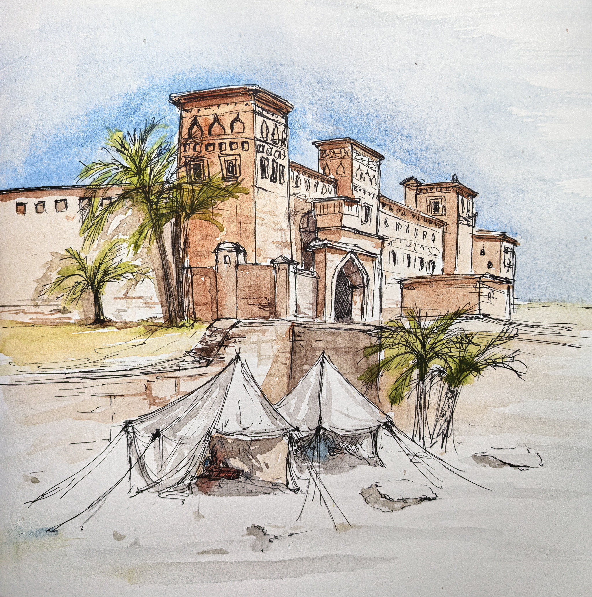 В Багдаде все спокойно... (скетч, 19x19, линеры, акварель).