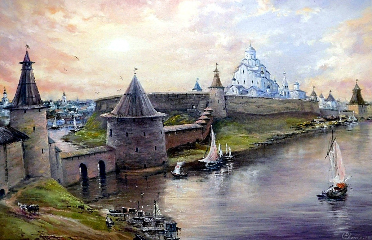 Я люблю ездить в Псков и Новгород. Для меня как для жителя северо-запада, они более всего олицетворяют что-то щемяще русское, в Питере такого не почувствуешь. Но это всё лирика. Был в Пскове, а там валил снег. Вышел на лёд реки Великой, ну и сделал такой кадр. Так как из-за снегопада самого города не видно, часто смотрю на этот кадр, и думаю , что может так действительно и выглядел Кром, лет шестьсот назад