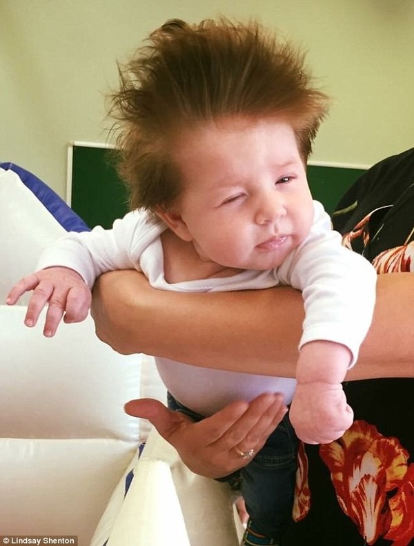 "На этом снимке нашему малышу Алфи два месяца", - говорит Джон Эрвин. - Сейчас ему четыре месяца, и если его прическу высушить феном, получится немаленькая шапка!"