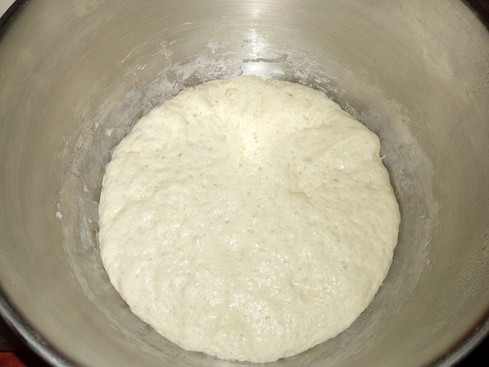 Опару вымешивать 5-6 мин на 2 скорости тестомеса. Брожение 210-240 мин, при температуре 29-31 С.