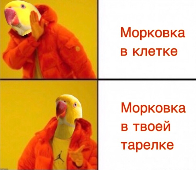1 balashutka В чужой тарелке вкуснее 6 лет назад [моё] Попугай Ожереловый попугай Мемы Картинка с текстом