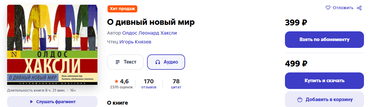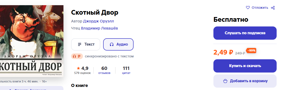 Ты реально думаешь, что власть испугалась книжки (особенно аудио варианта) и запретила её? Вот например тот же Оруэлл аудиокнига продаётся.