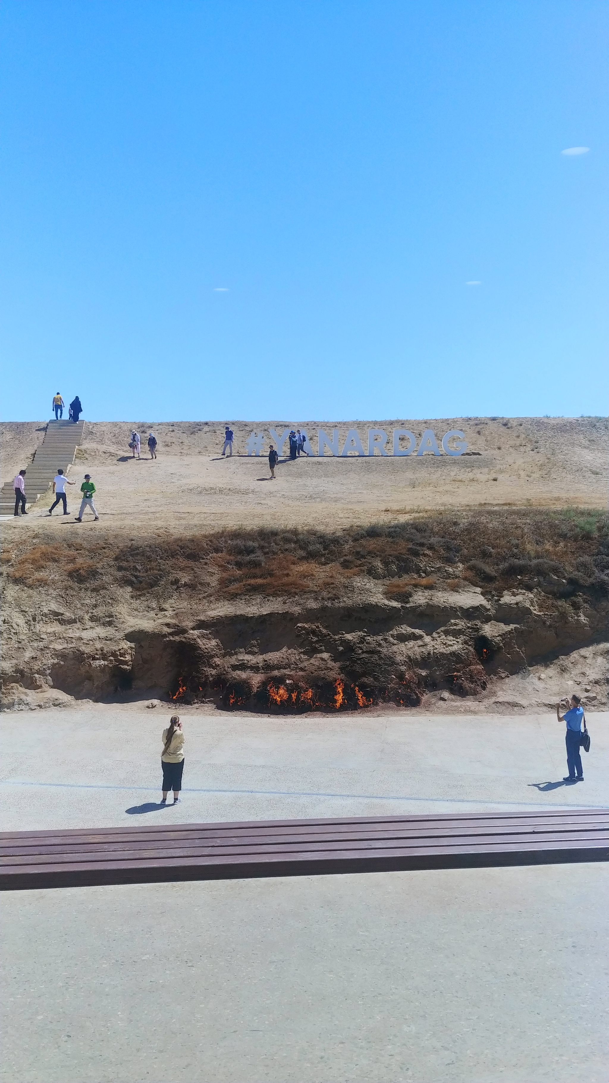 Янардаг - горящая гора. Много туристов отовсюду: Арабы, персы, европейцы