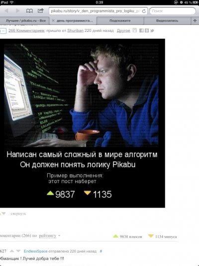 ТС, приветствую, если ты еще тут сидишь, хотя по постам видно, что все-таки сидишь, ответь, пожалуйста, как так вышло, что твой пост набрал плюсов и минусов в точности с твоим предсказанием? Я сижу ломаю голову и вообще не могу понять, как так получилось? Не Фотошоп же