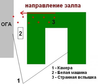 Есть фото показывающее что под этим окном никогда не было кондиционера. По поводу вспышки: Включите максимальное качество и вы разглядите что вспышка, о которой вы говорите это первый из серии взрывов, произошедший за деревьями в парке. После там дым поднимается. Врыв за белой машиной и дальше - уже последние из прилетевших снарядов.