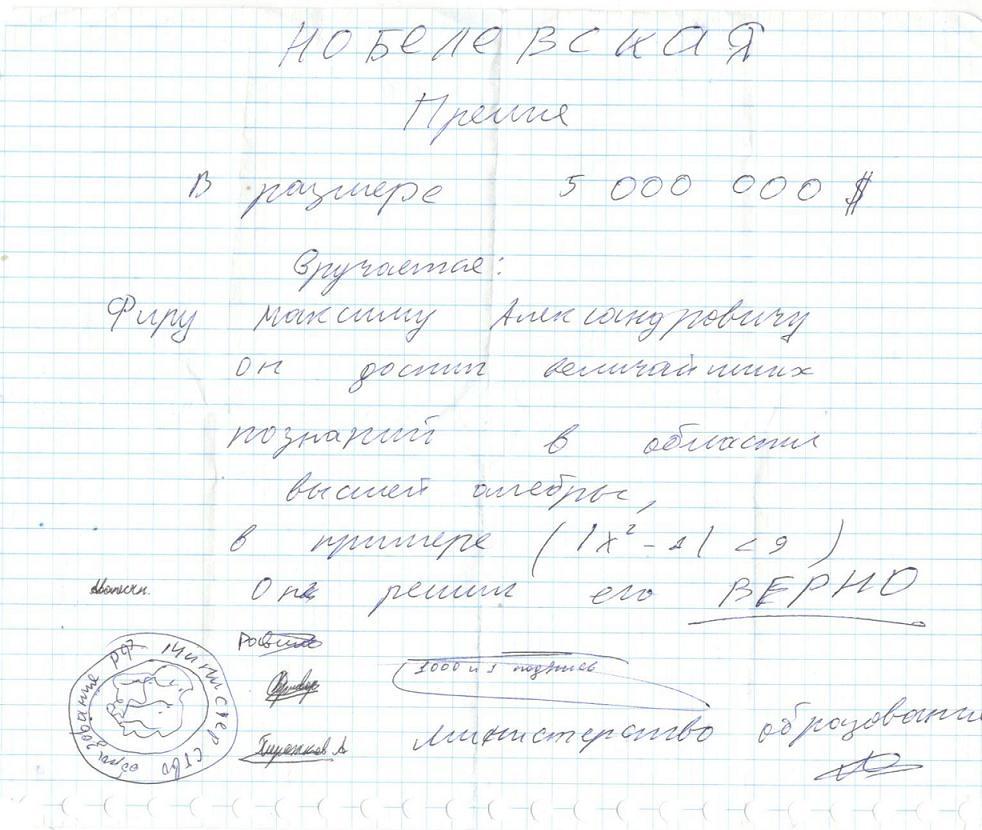 Сейчас он пытается связаться с исполнительным органом Министерства Образования для получения вознаграждения, о котором они видимо забыли.