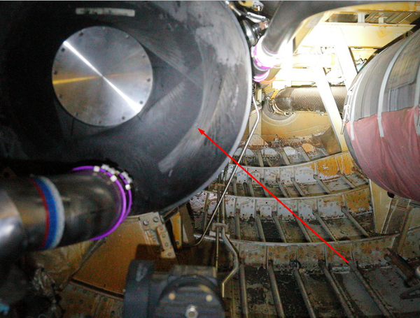 При нажатии кнопки смыва открывается клапан, и все содержимое всасывается в разряженную среду, откуда проследует в приемный бак. Именно на фото ниже изображен данный клапан. Там он вращается вокруг оси. При нажатии на кнопку он поворачивается в одно положение и открывает отверстие, через которое и всасывается все содержимое, а уже через 4 секунды он автоматически закроется обратно. Именно поэтому в унитаз нельзя ничего кидать, ведь это может задеть этот самый клапан и он не сможет закрыться. В итоге туалет будет "сосать" непрерывно. Решение в полете есть: можно вручную перекрыть второй клапан, однако туалет работать уже не будет.