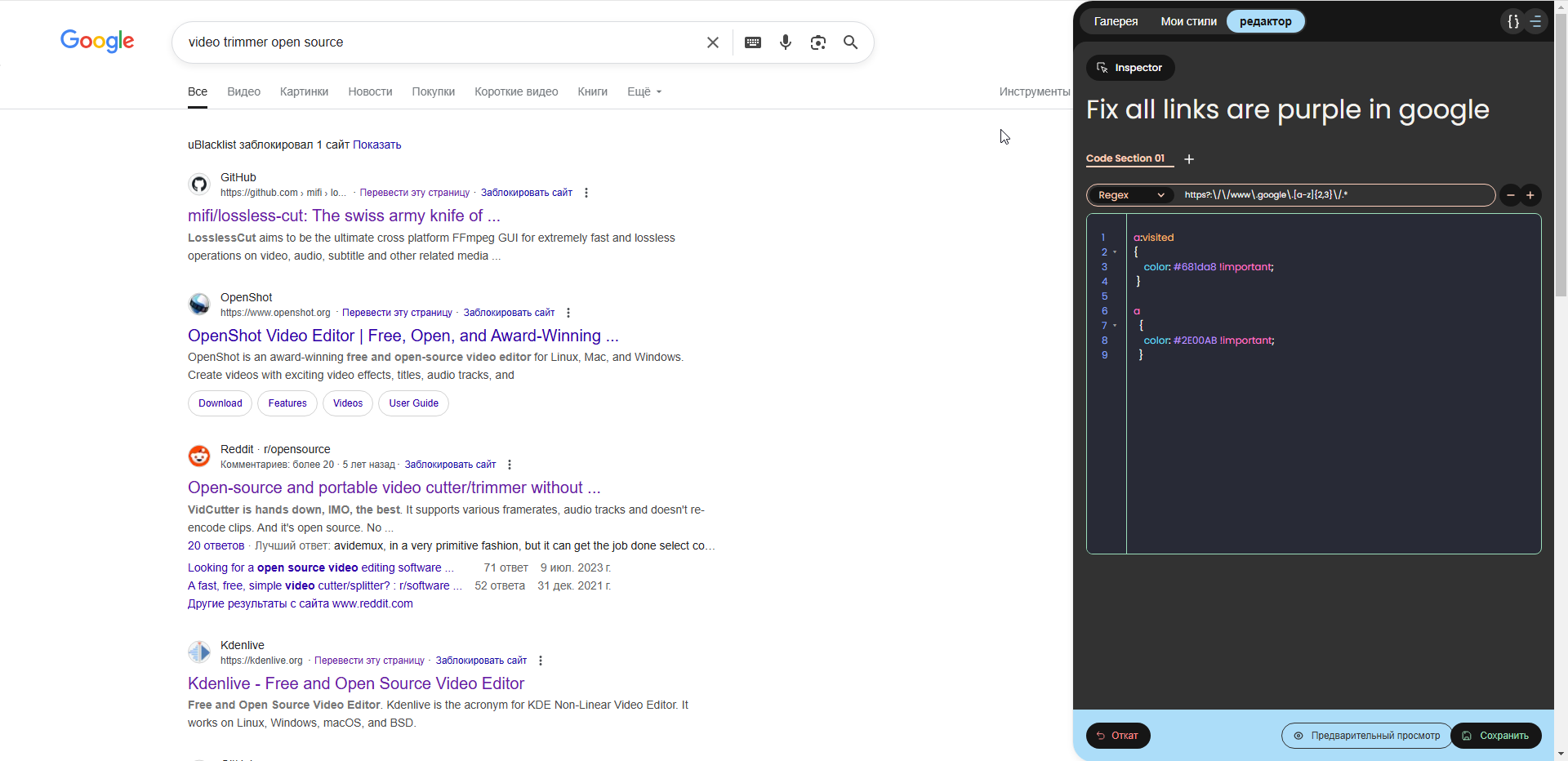 В гугле все ссылки стали фиолетовыми (ФИКС)