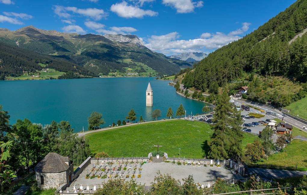 Поселение Курон Веноста оказалось полностью под водой в 1950 году, когда там образовалось искусственное озеро Резия.