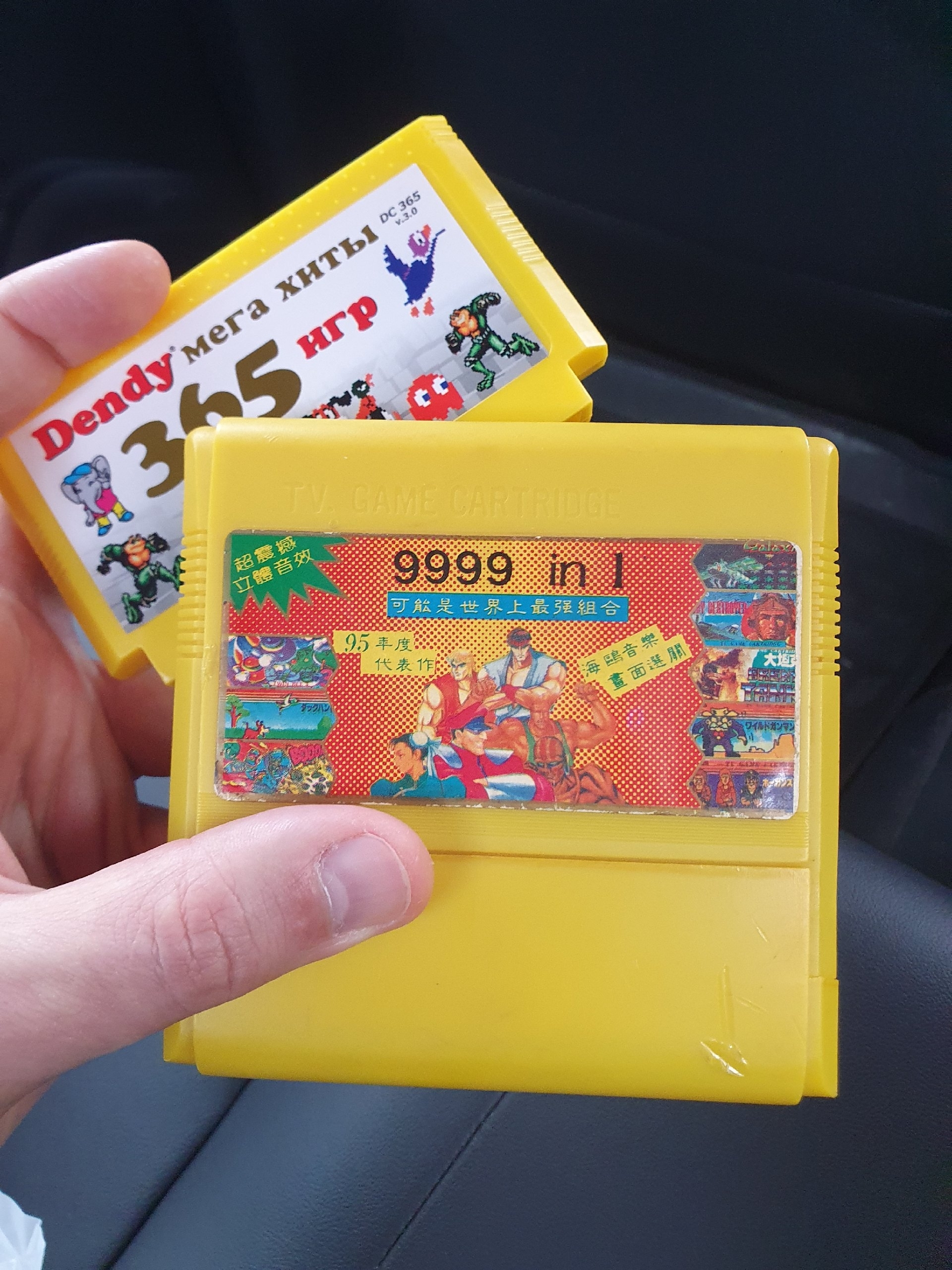 8 Gamecollectors Твоя коллекция - видеоигры + В каком картридже игр больше?)) 21 день назад картридж Денди 9999 в 1 Прикупил один для души, другой для игры 😎 Картриджи Dendy: мега хиты 365 игр и TV game 9999 in 1 👆 Публикуй свою коллекцию! Подключайся к сообществу и хвастай, чем новым пополнился ;) Компьютерные игры Коллекционер Видеоигра Ретро-игры Ностальгия Коллекция 90-е Олдскул Детство 90-х 2000-е Nintendo Sega NES SNES Dendy Олдфаги Игры на Денди Видео RUTUBE Ещё 0