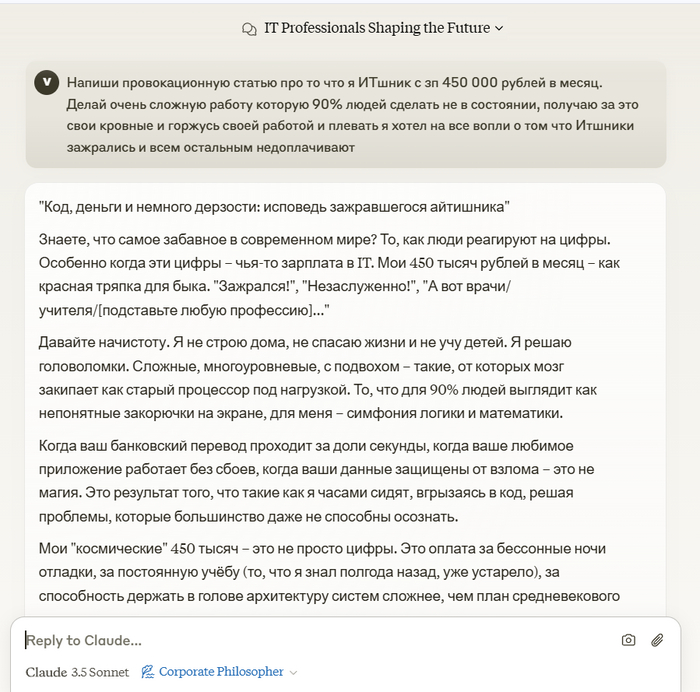 И да, я не стесняюсь своей зарплаты. В мире, где каждая строчка кода может стоить миллионы, 450 тысяч – это даже не потолок. Это просто честная цена за умение говорить с машинами на их языке и заставлять их делать то, что нужно людям.