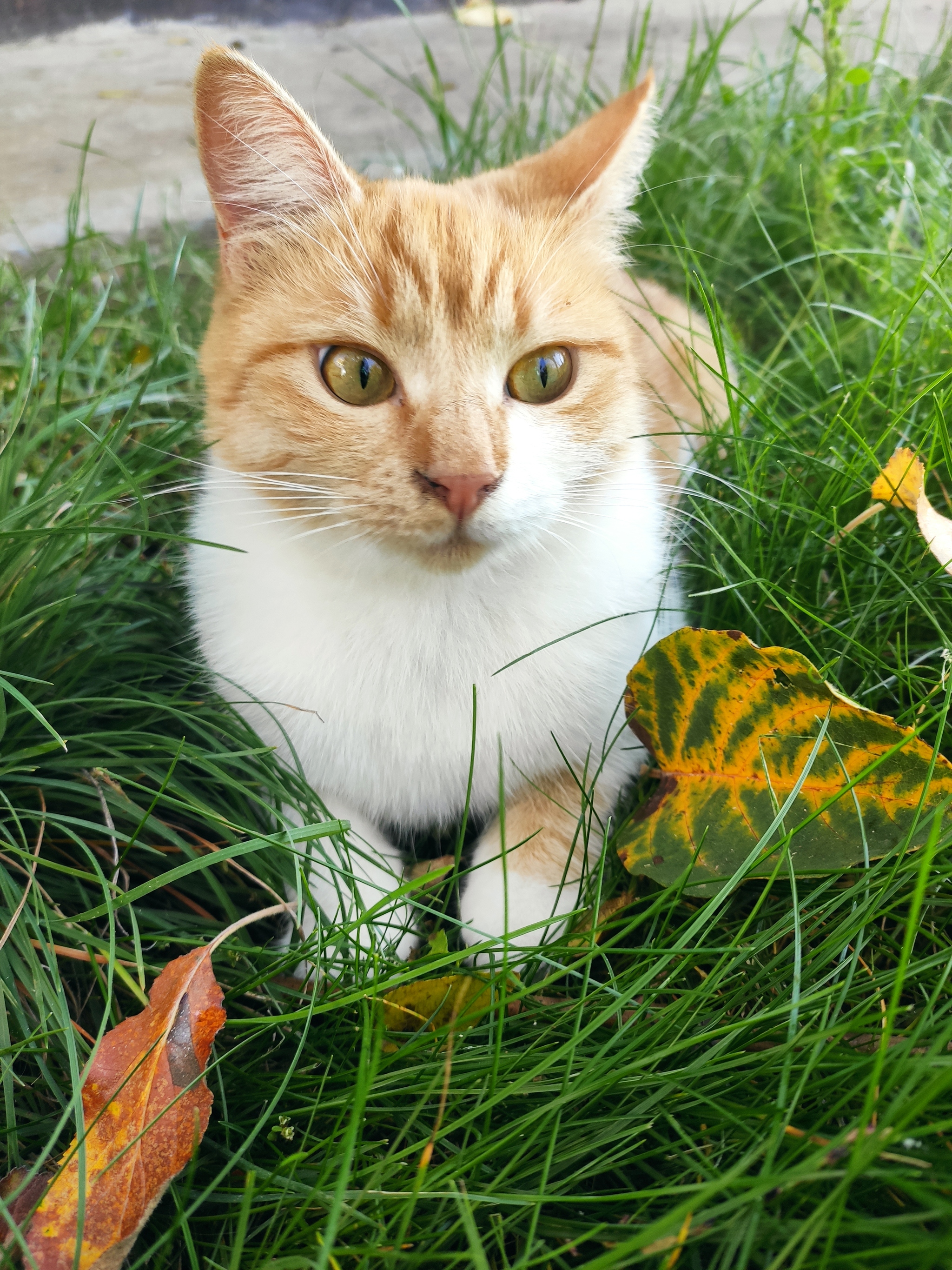 Наслаждаются последними теплыми осенними днями. Бежевая - Пуша, рыжая с белым - Пчёла.