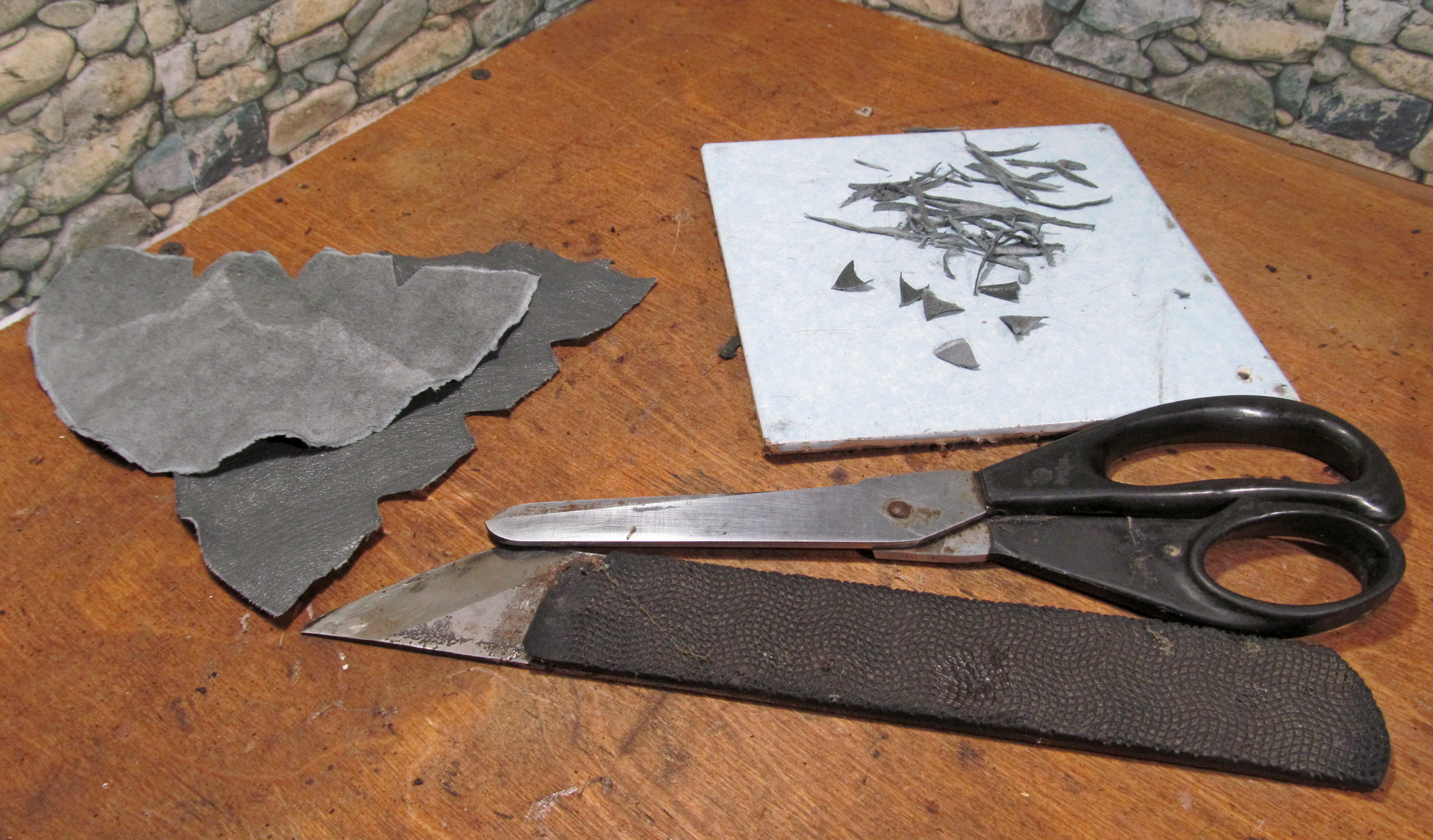 Изготовим детали из подкладочной кожи. Срежем края, вырежем зупчики.