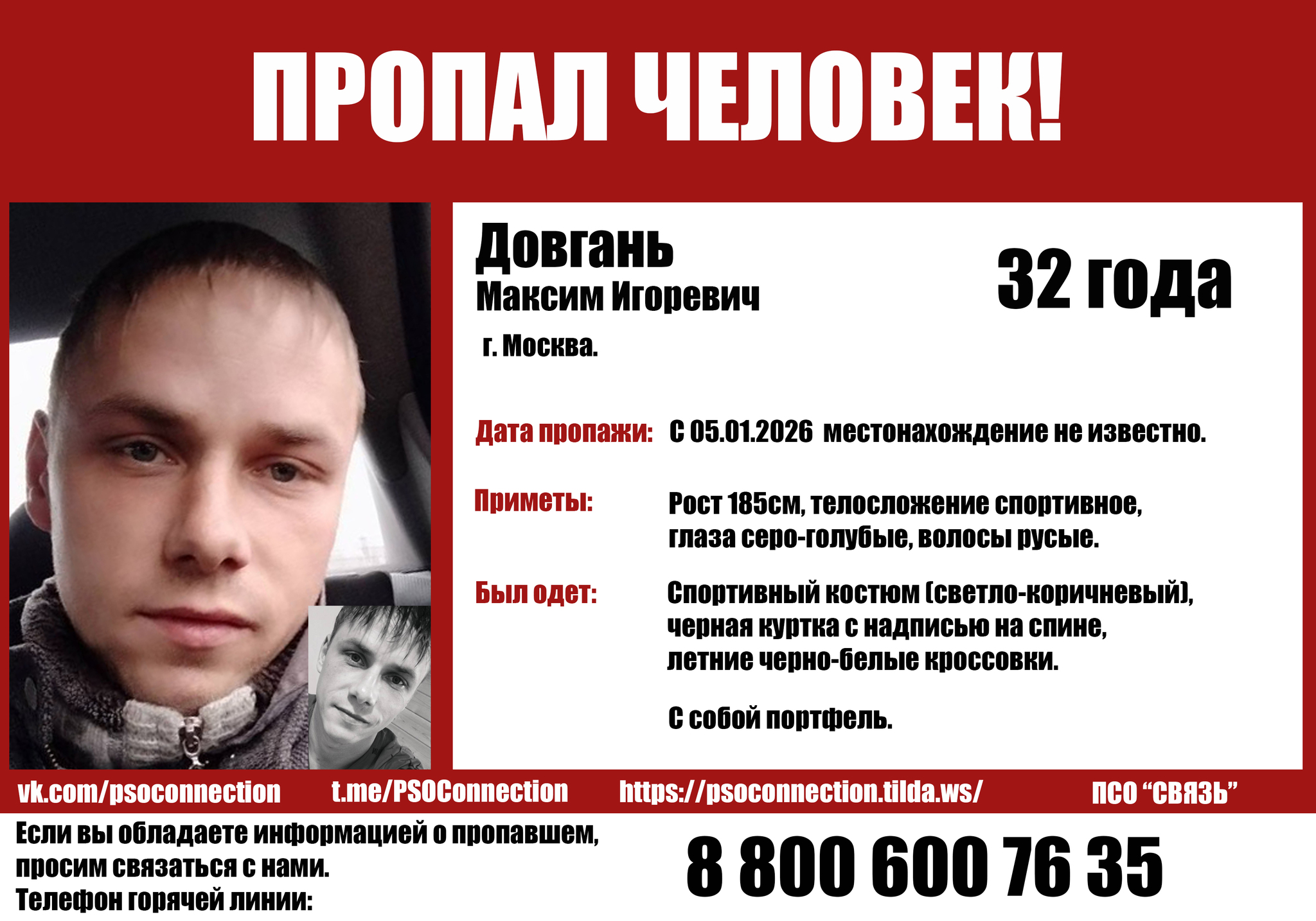 Может, вы видели его по дороге на работу или в метро? Может, он заходил в ваш двор или магазин? Любая, даже самая незначительная деталь — как лучик света в темноте для тех, кто его ищет.