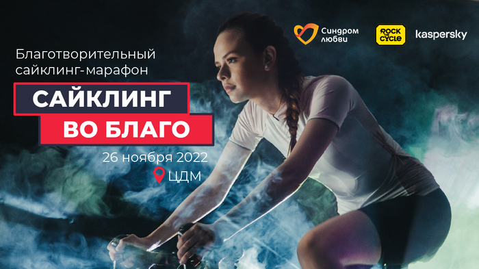 26 ноября в московской сайкл-студии Rock the Cycle (Центральный Детский Магазин) состоится благотворительный марафон «САЙКЛИНГ ВО БЛАГО». Цель марафона – собрать 500 000 рублей на образовательные и развивающие программы для людей с синдромом Дауна. Марафон открыт как для новичков, так и для профессиональных спортсменов.