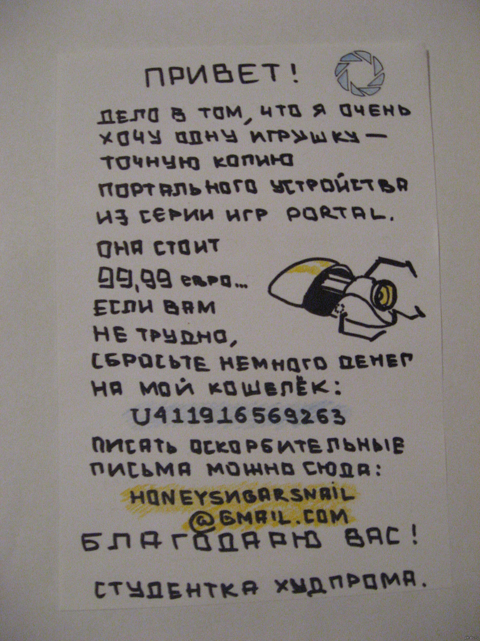 honeysnail В нашей общаге на третьем этаже 12 лет назад Помогите девушке насобирать на портальную пушку! [моё] Portal Общежитие Студенты Помощь