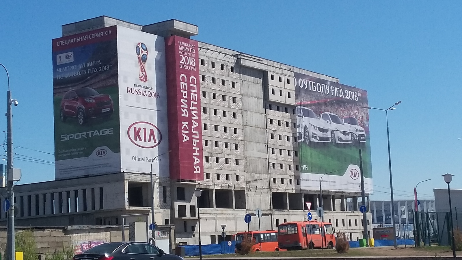 alekskhl В Нижнем Новгороде вояют самый большой билборд 7 лет назад Фасад недостроя к ЧМ-2018 в Нижнем Новгороде маскируют гигантским баннером! [моё] Гостиница Недострой Чемпионат мира Чемпионат мира по футболу 2018