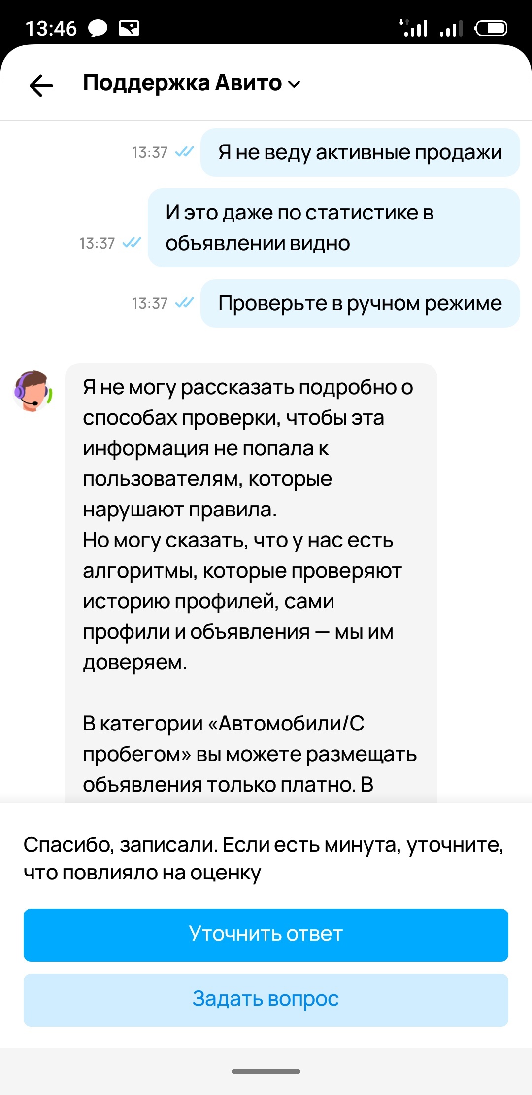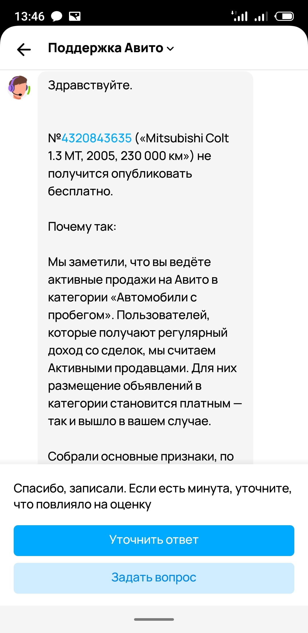 Написал в поддержку, естественно получил шаблонный ответ, что я дикий перекупщик и теперь я не могу размещать объявления бесплатно...