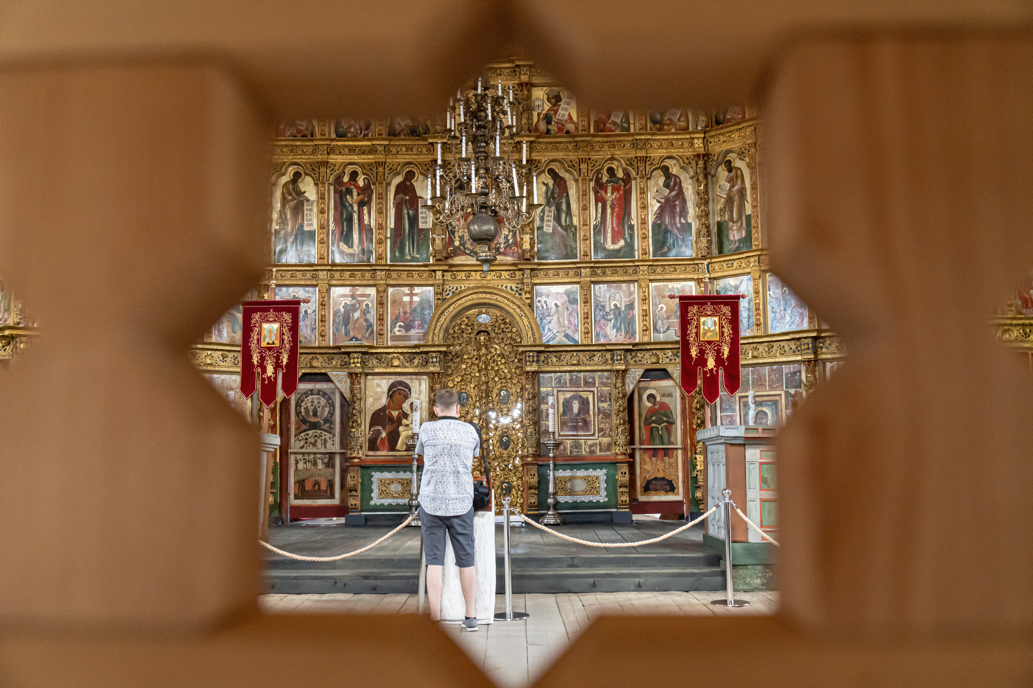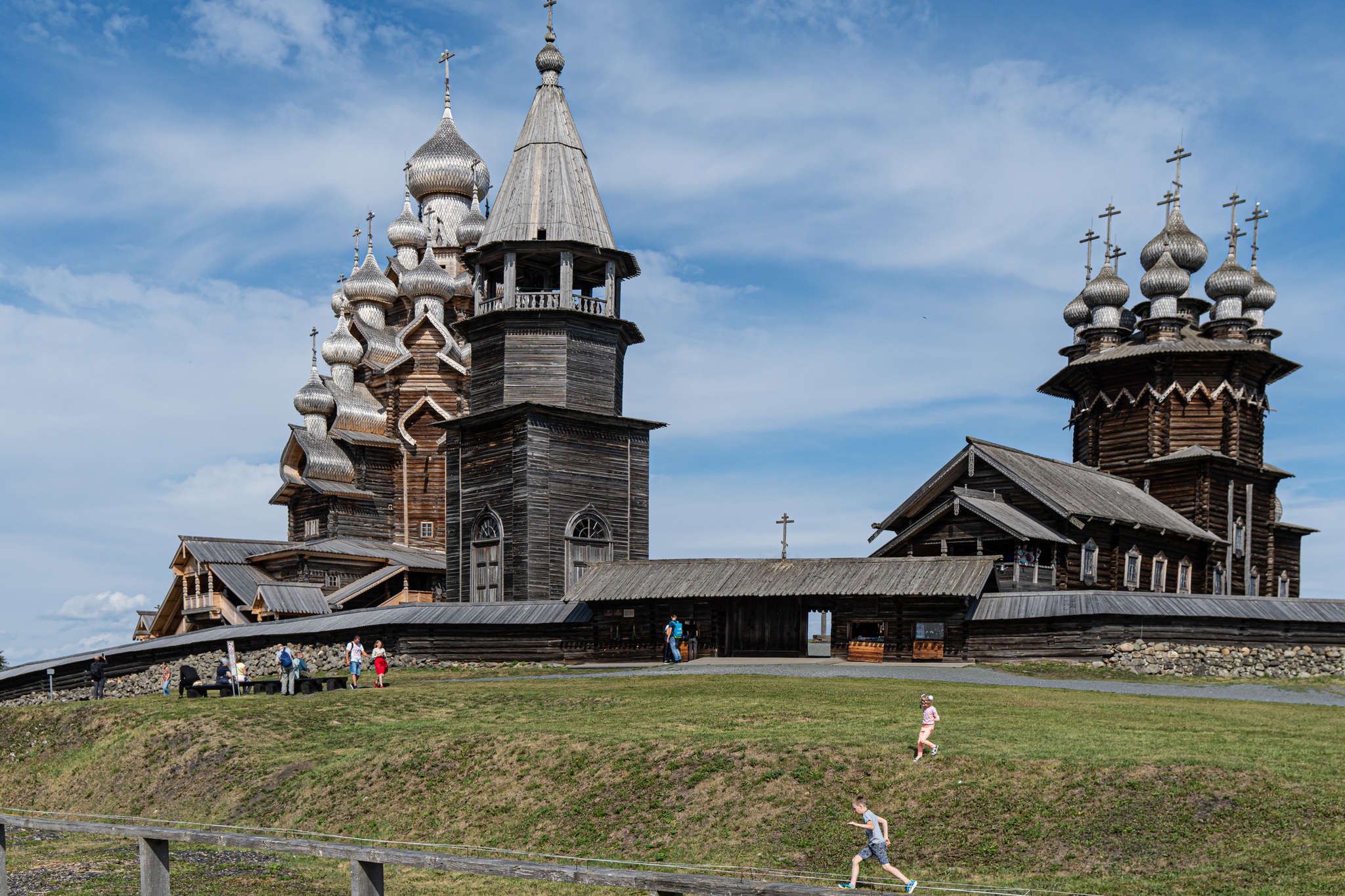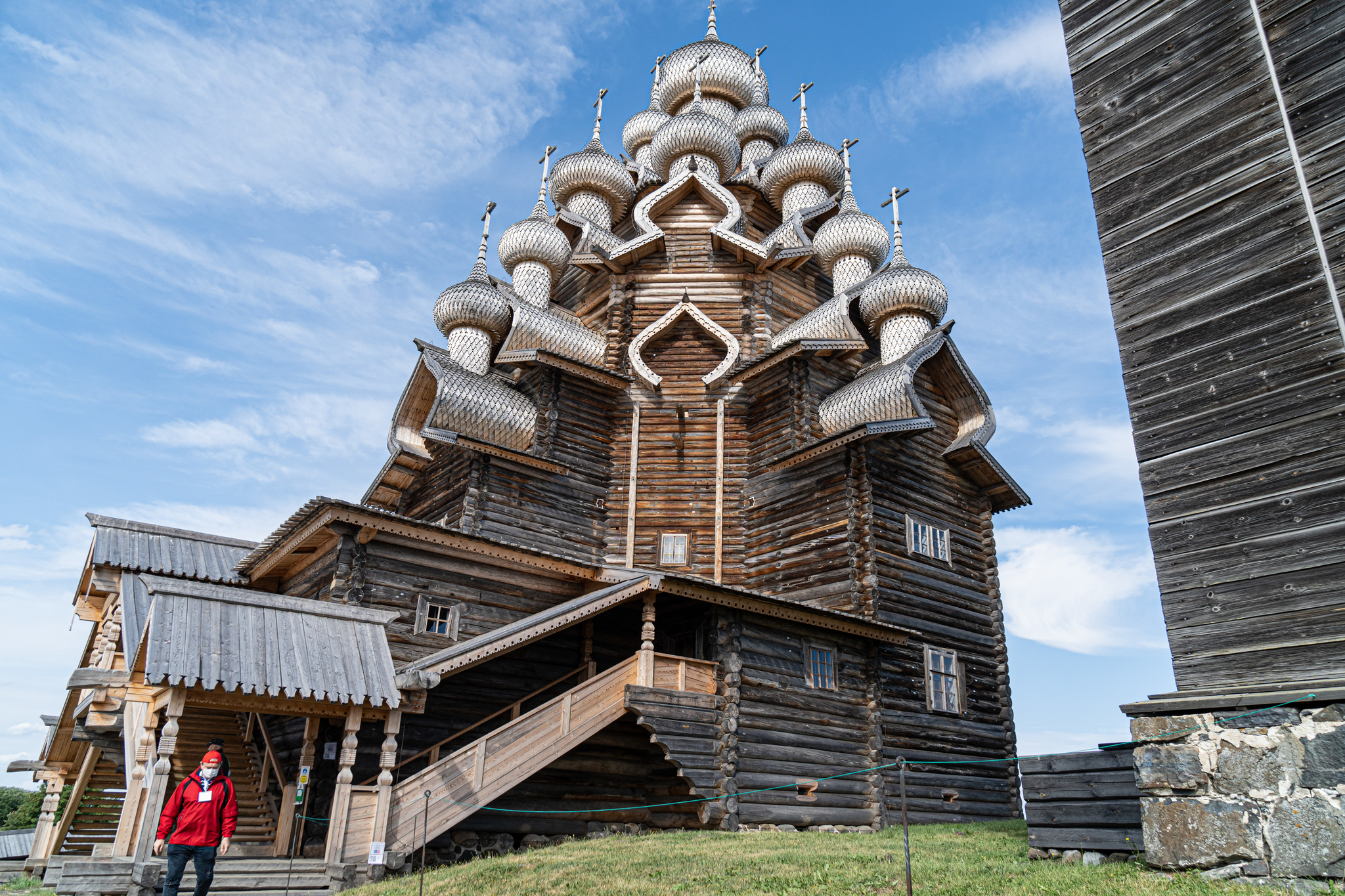 Церковь Преображения очень напомнила норвежские ставкирхи с некоторыми отличиями: она гигантская, больше золота, не пахнет дёгтем, и в норвежских церквях не дежурят росгвардейцы. Вообще росгвардейцы притащили на остров себе авто и катаются, не знаю по каким делам, наверное ловят тех, кто летает на коптерах, на острове это запрещено.