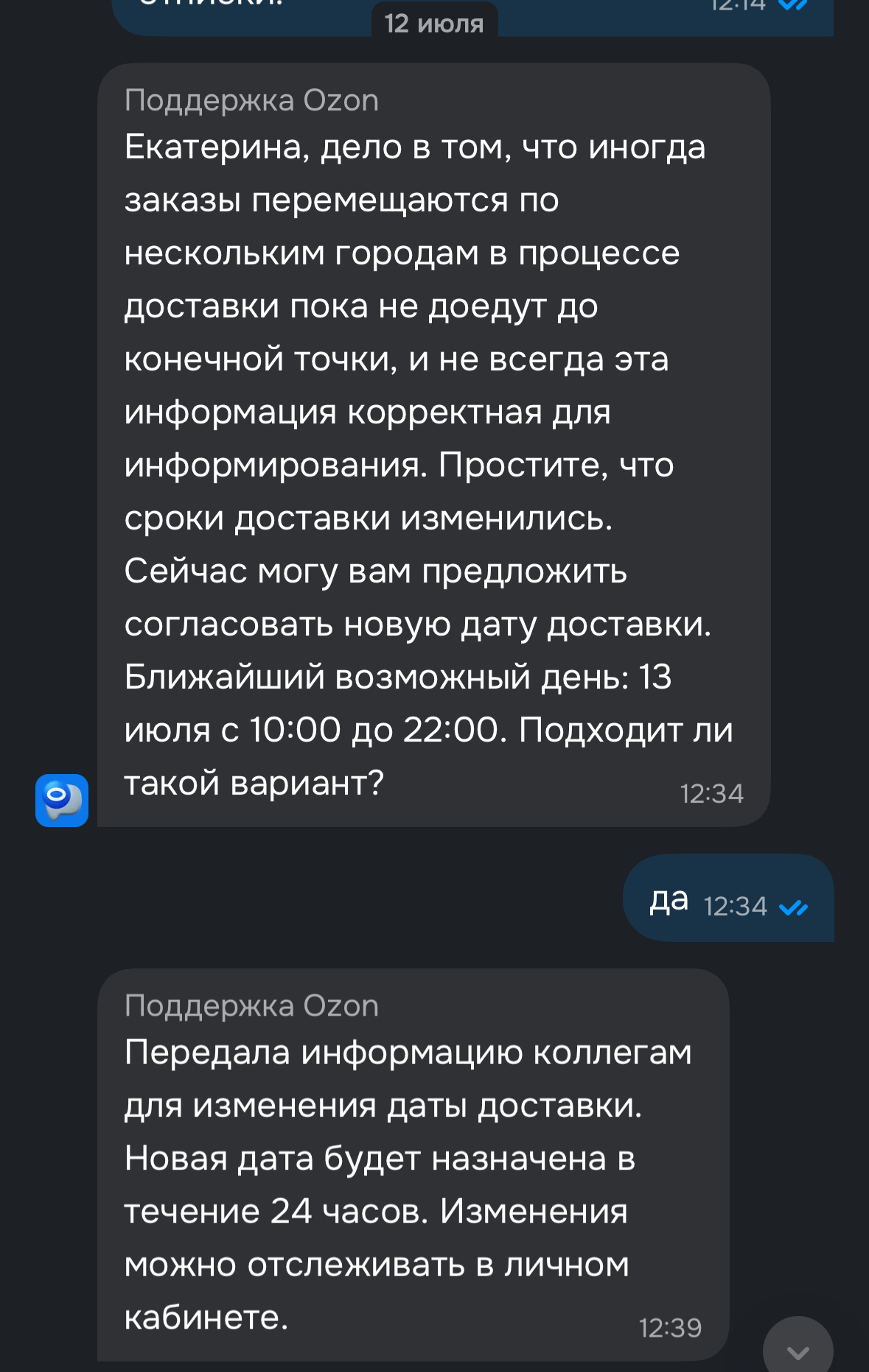В день доставки его статус не менялся, с 9 до 22 прождали курьера, которого так и не появилось. А затем в приложении поменялся статус на такой: