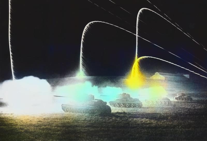 Ночная атака советских танков Т-34-85 у станции Раздельная