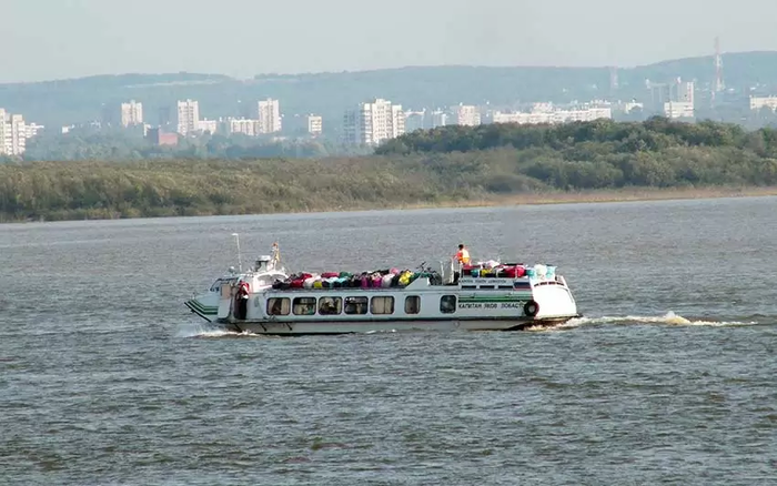 Теплоход «Полесье» привёз из Фуюаня в Хабаровск группу «челноков». На крыше сложен багаж. Источник: wikimedia.org