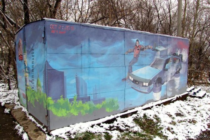 DzhonSina В Перми появился арт-объект с героями фильма «Назад в будущее» 10 лет назад Искусство Арт Назад в будущее (фильм) Марти Макфлай Ховерборд Delorean Пермь Гараж