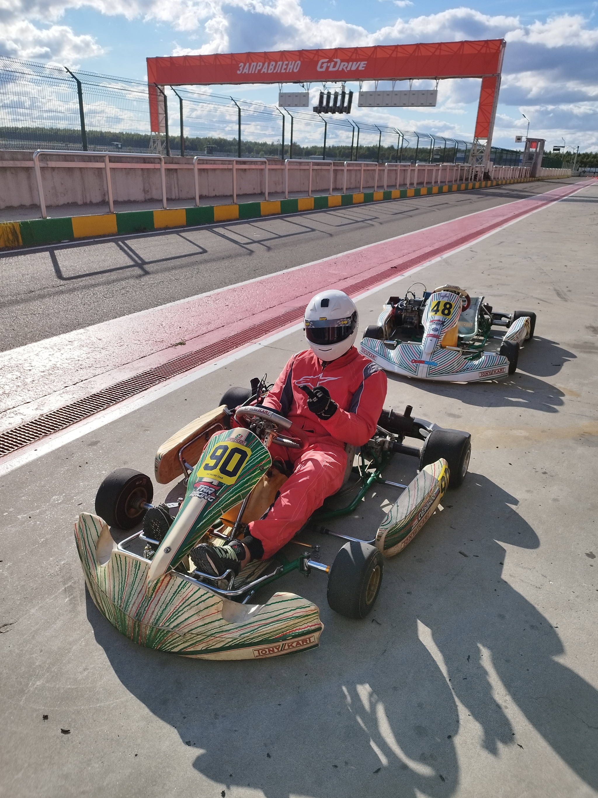 На обратном пути с дачи поехали покататься на картинге, первый раз на таких машинках. Очень понравилось.