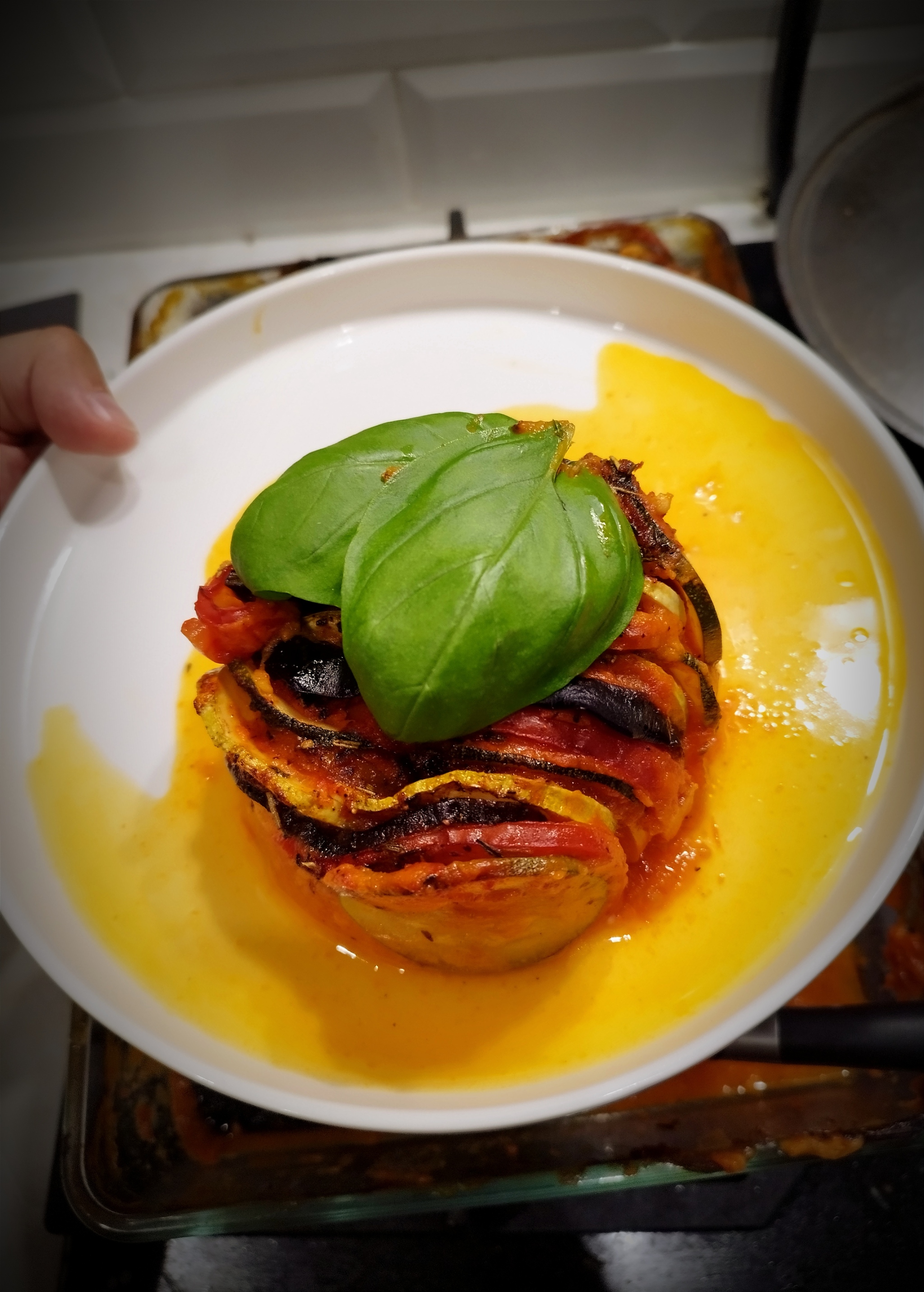 В начале 2022 года приготовил рататуй. Взял томаты пару видов, баклажаны и цукини, сделал овощной соус из печеных овощей и прекрасно себе запек!