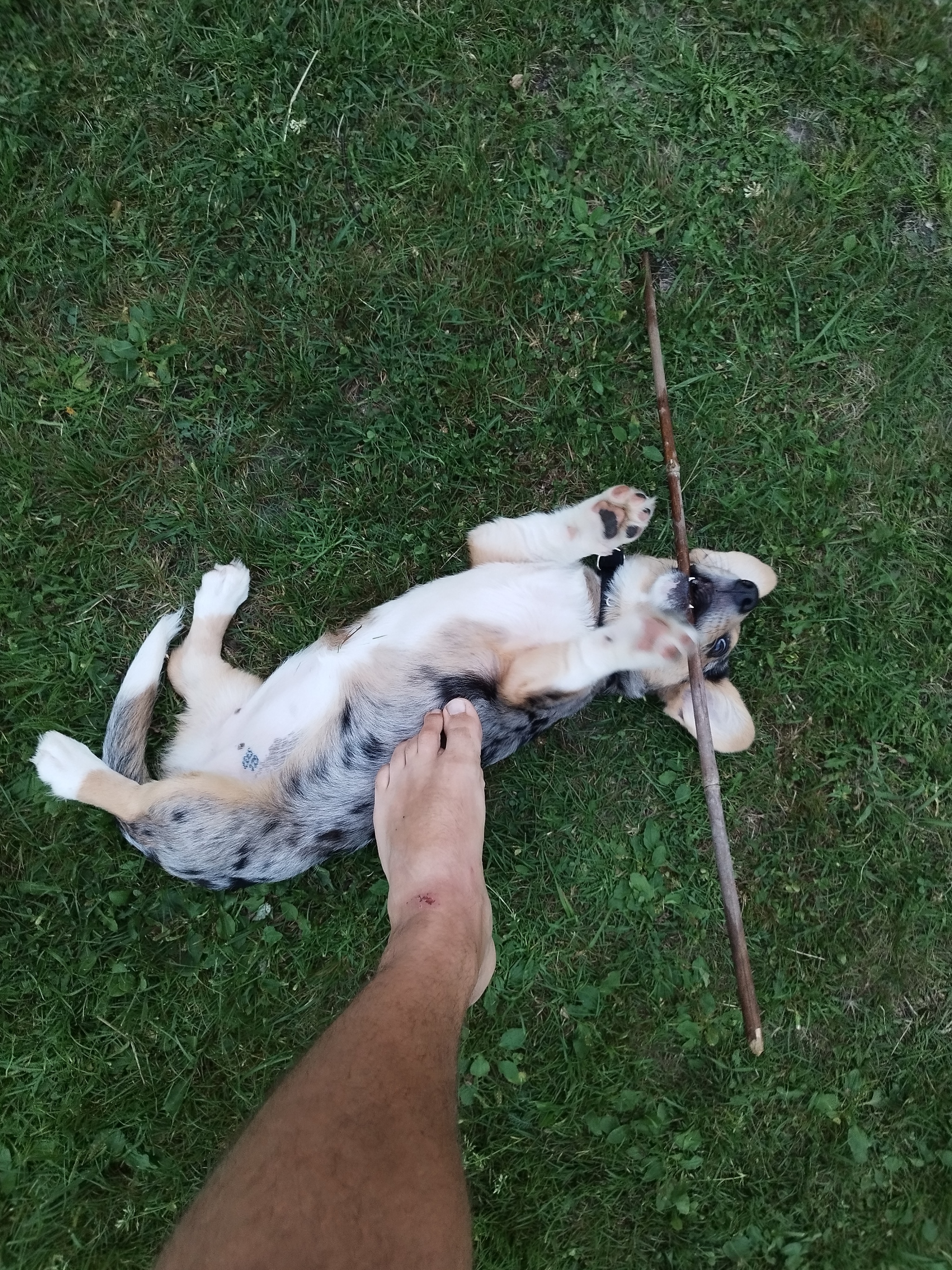 Приехали друзья с собаком, собака можно гладить по пузу.