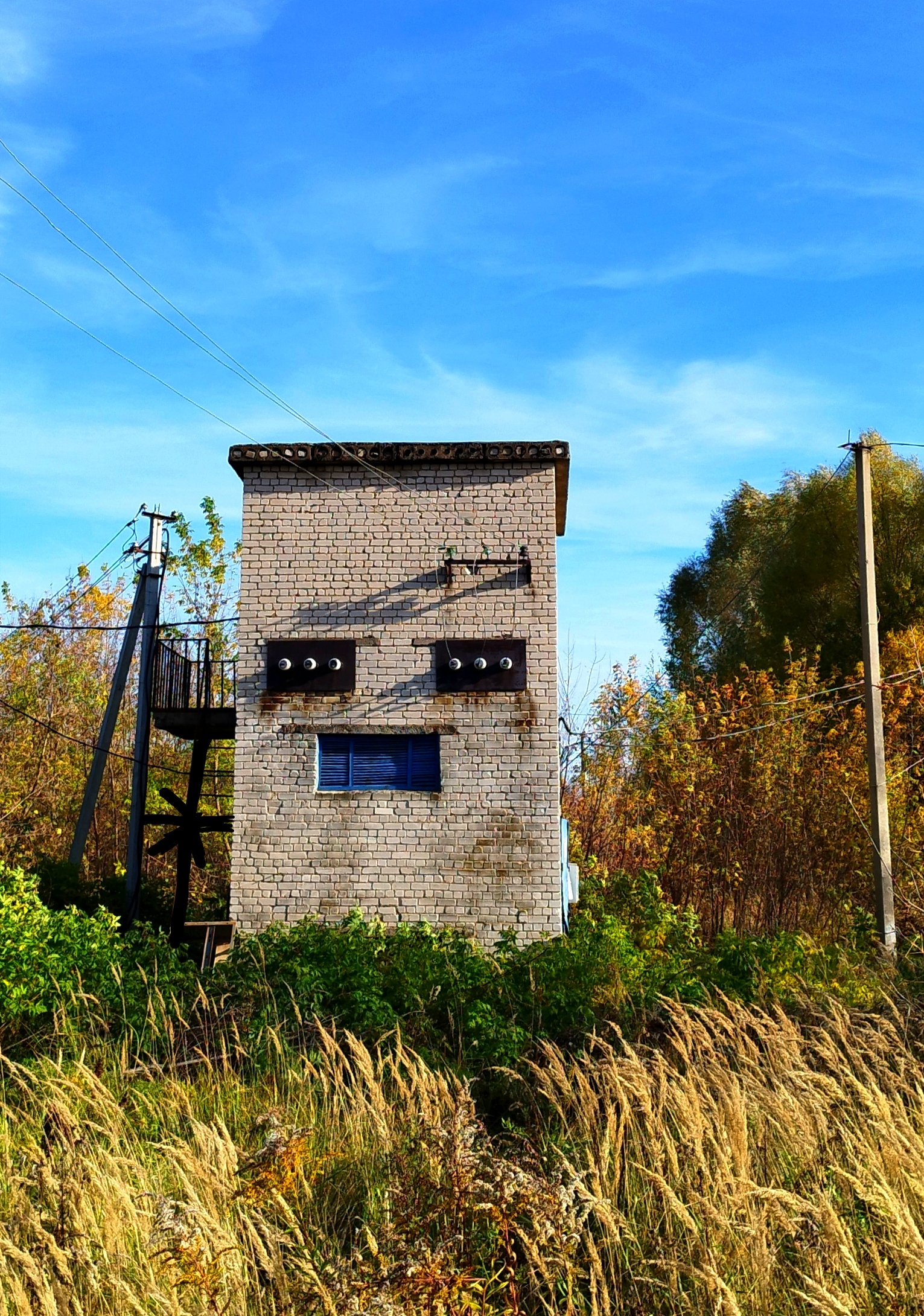 Вернувшись на родину поехал смотреть Шуховские башни, а по пути встретил улыбающийся куб с щёткой в руке.