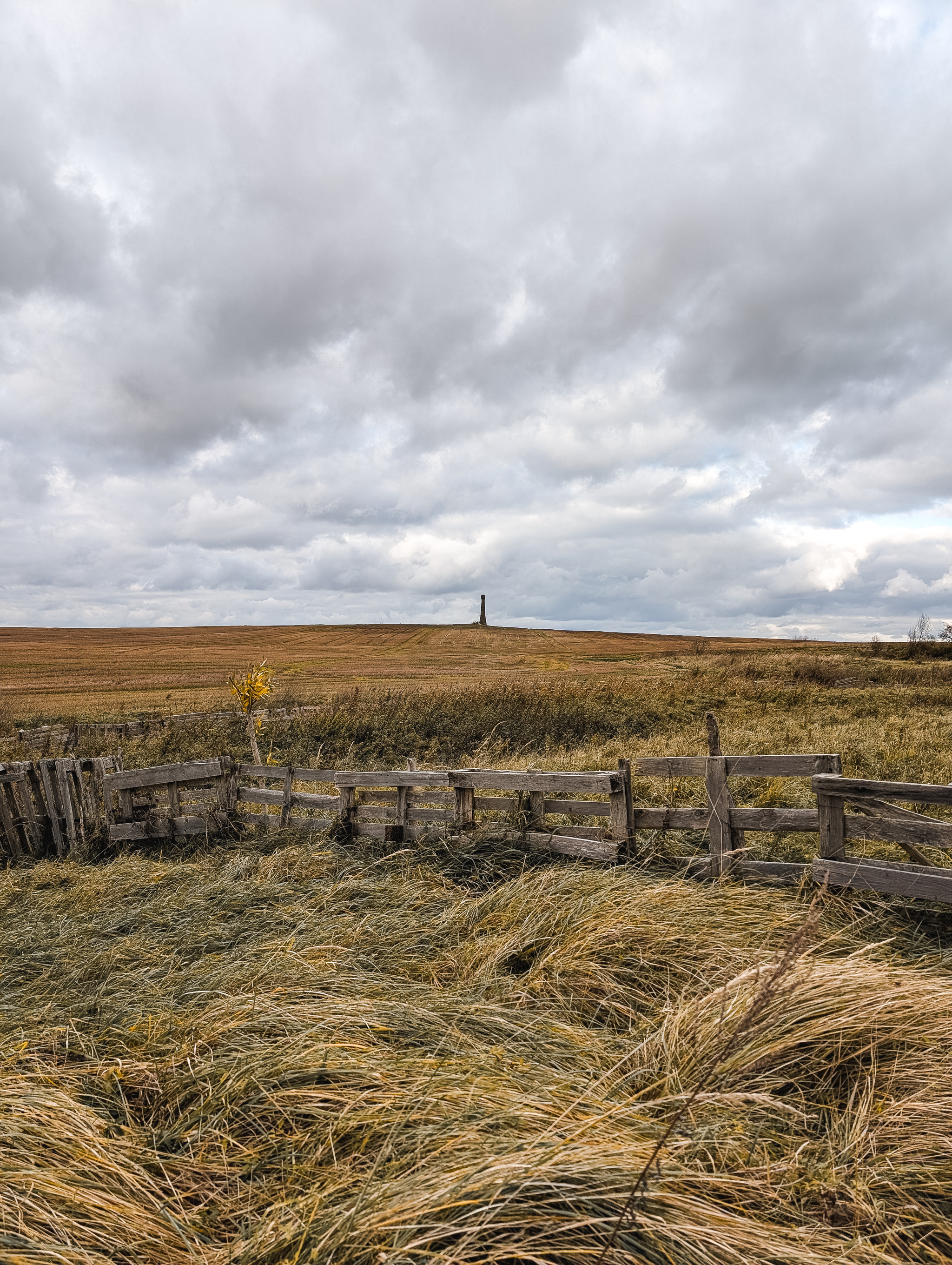 Тут еще пасмурно и октябрьская погода добавляет хтони. Поэтому первый ветряк, который удалось найти выглядит прям грустно.