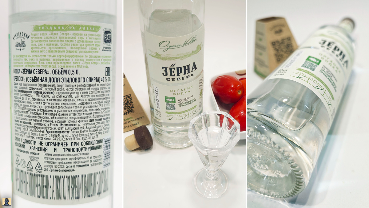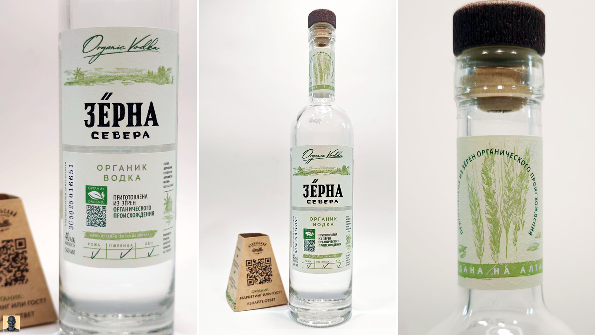 Продолжаем непосредственно изучать золотых медалистов конкурса водок «EURASIA SPIRITS DRINKS» 2025, который проходил в Москве. Сегодня это алтайская водка Зёрна Севера. Как написано на этикетке, это Органик водка со всеми вытекающими. По российскому законодательству право маркировать продукцию знаком organic получают предприятия, которые применяют в производстве не менее 95% органического сырья, выращенного в экологически чистых зонах с использованием только разрешенных удобрений. На этикетке размещают QR-код, чтобы была возможность получить сведения о продукте и убедиться в наличии сертификата. Все это на этикетке присутствует.