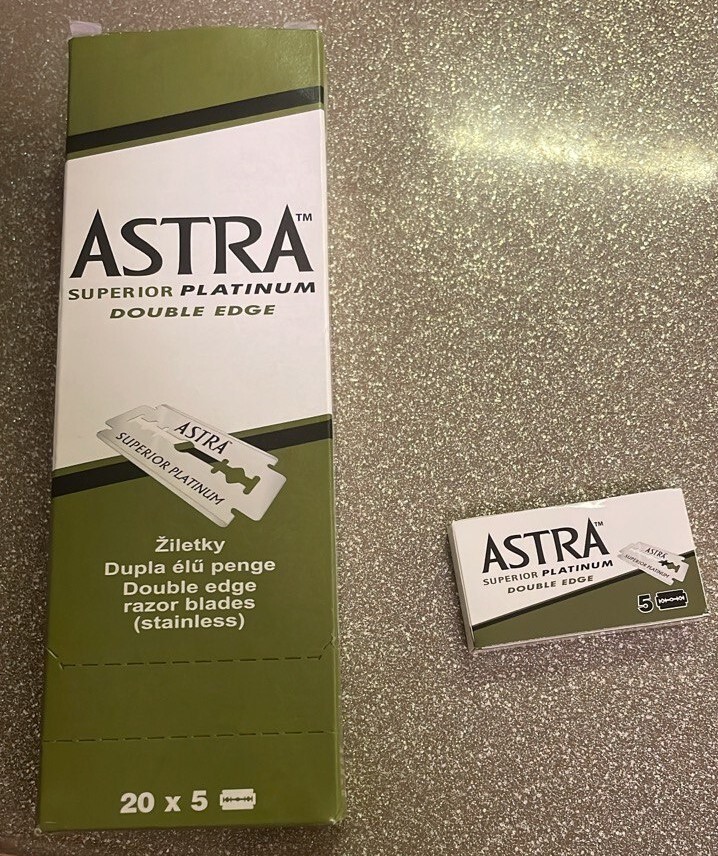 На лезвиях Gillette Platinum я не остановился, хотя мне они показались очень комфортными. Заболел бритвенной темой, хочется попробовать все, что доступно. Следующими для испытания были Astra Superior Platinum, разницы с GP не заметил. Начитавшись постов и форумов, понял что лезвия производимые P&G на Питерском заводе одинаковые, разница только в покрытиях. Сразу купил два блока Astra Superior Platinum, блок-книжку Gillette Platinum. Это из-за боязни, что все пропадет и больше не будет в продаже. Собирательная болезнь в каком-то смысле))).