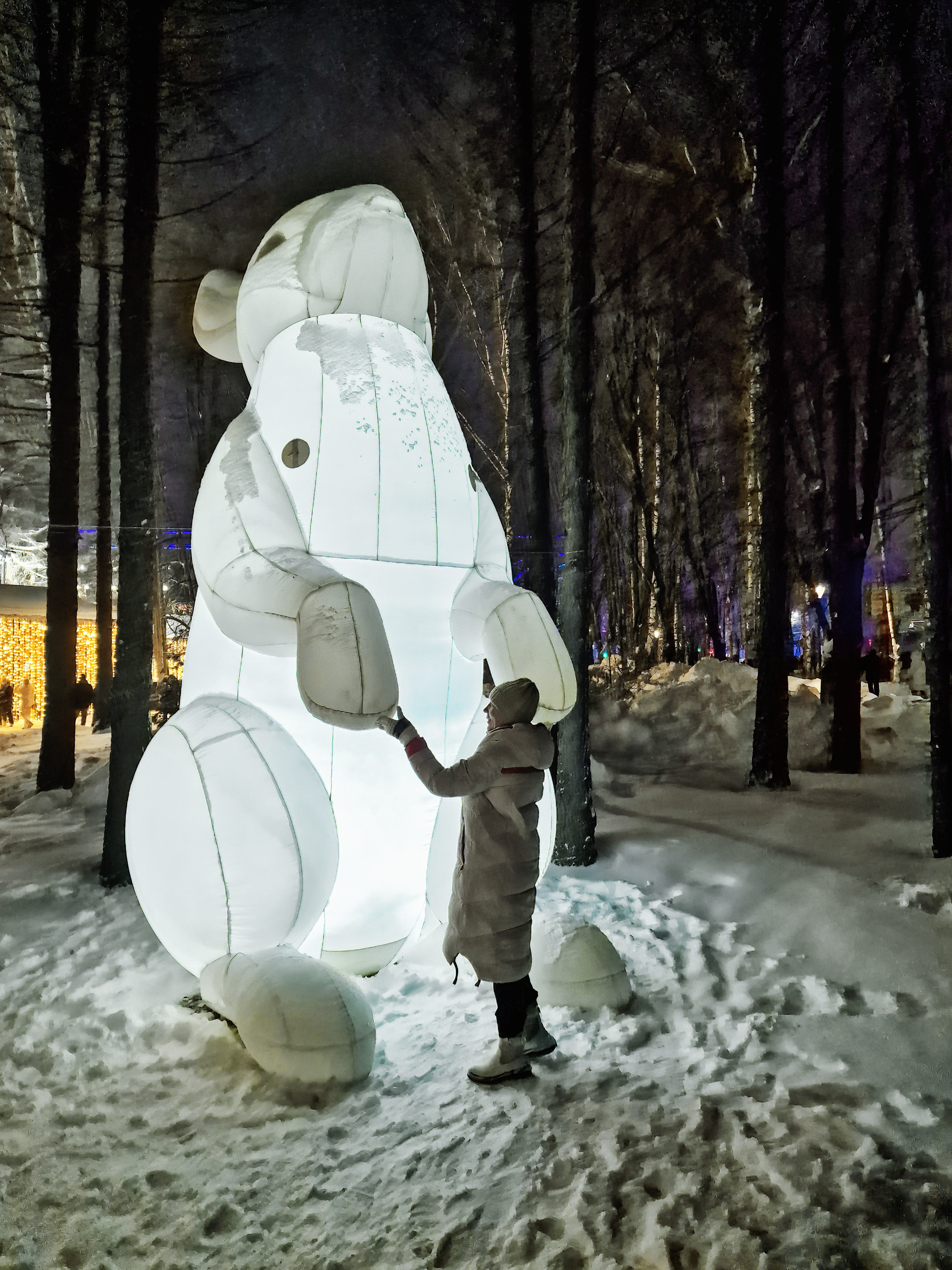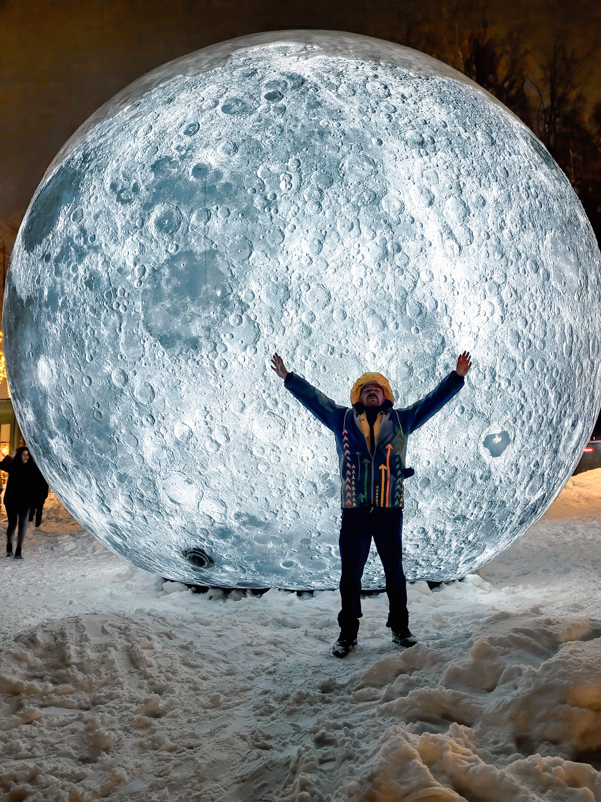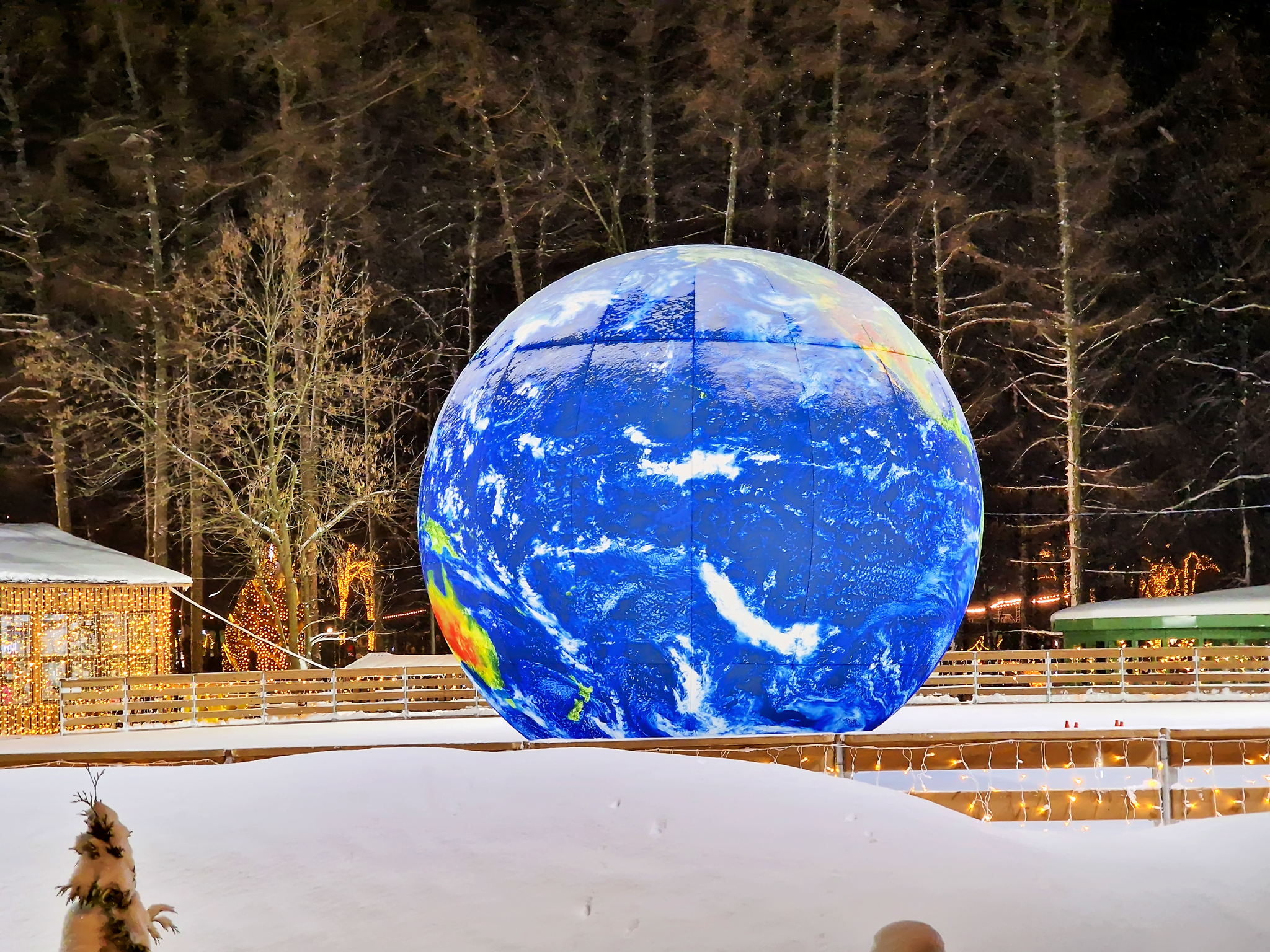 На катке установили надувную Землю - очень необычно и интересно смотрится. А за Планетарием 1 - надувную Луну. Издалека Земля с Луной смотрятся небольшими, но по факту они около пяти метров в высоту!