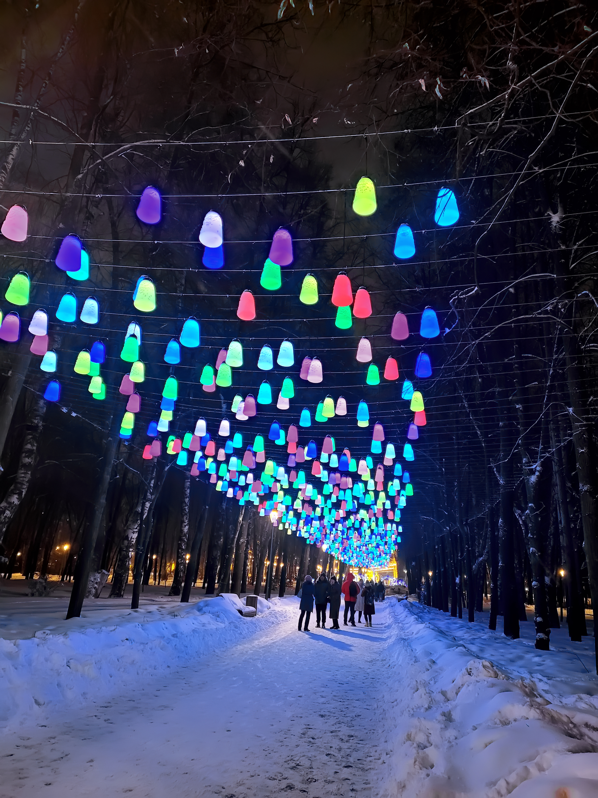А ещё появилась аллея (от фонтана к круговой качели), украшенная разноцветными фонариками над головой. Вот это действительно яркое и радостное место!