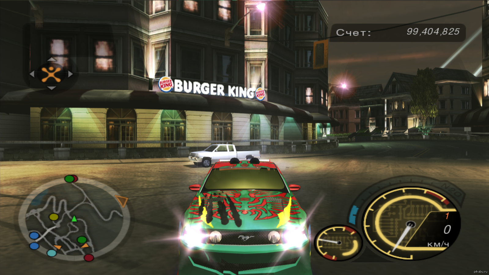 5 hzsanblch 10 лет назад В поиске новых открытий в старых играх! А раньше даже и внимания не обращал... [моё] Need for Speed:Underground 2 Скриншот Burger King Ford Mustang