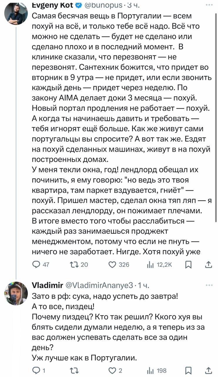 16 IvanTepesh В Португалии не всё так однозначно 2 месяца назад Скриншот Юмор X (Twitter) Сарказм Португалия Длиннопост Комментарии Мат Эмиграция Ещё 0