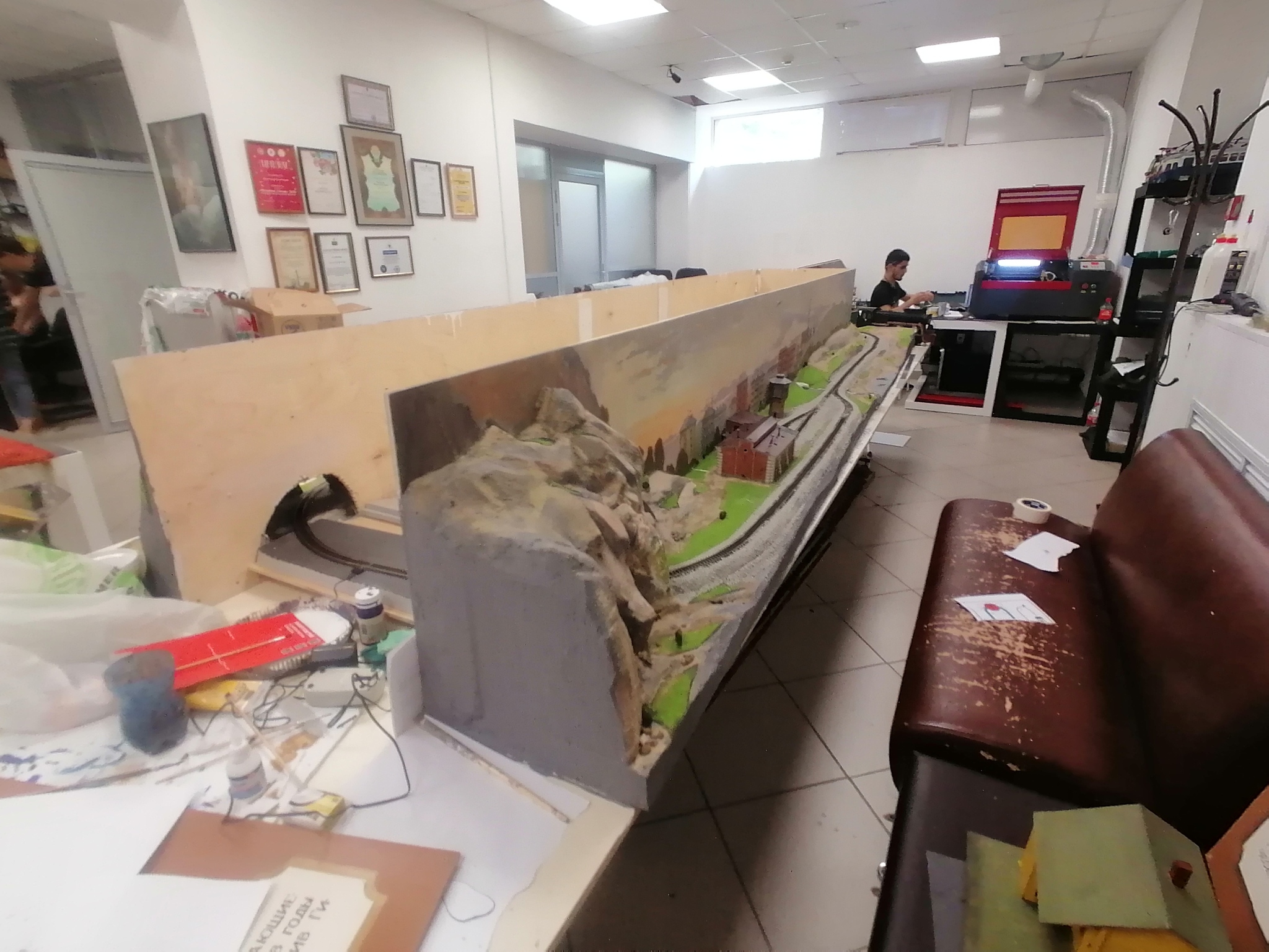Теперь еще один не менее интересный экспонат. Работающая железная дорога сквозь стену в музее! Мое участие ограничилось лишь подключением блоков питания. Но поделиться хочется)