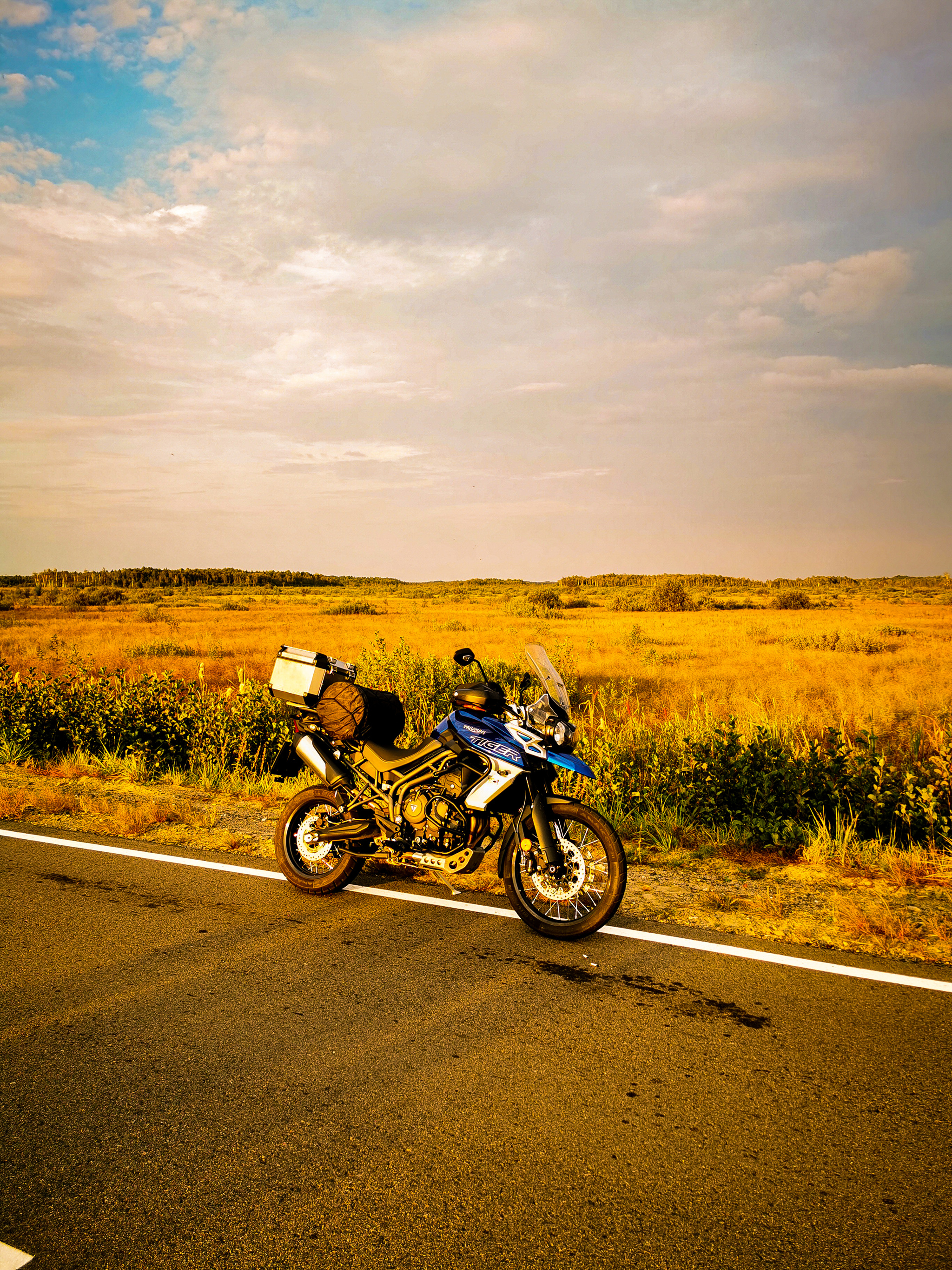 Следующим утром мне предстоял перегон до Гомеля, чуть больше пятисот километров, ничего серьезного если бы не одно но. Любой мотоциклист знает звук, с которым остывает глушитель. И где-то через триста километров, остановившись на перекур я услышал это цоконье, но не со стороны глушителя, а непосредственно у двигателя. Странно, осмотрел примерное место звука и увидел интересную картину, болт, который держит кронштейн защиты картера выкрутился, уперся в коллектор и начал проминать его своим весом – интересное конструкторское решение, подумалось мне. Ключом до болта из-за защиты не подлезть, а головок, что бы эту защиту снять у меня не было, дилемма.