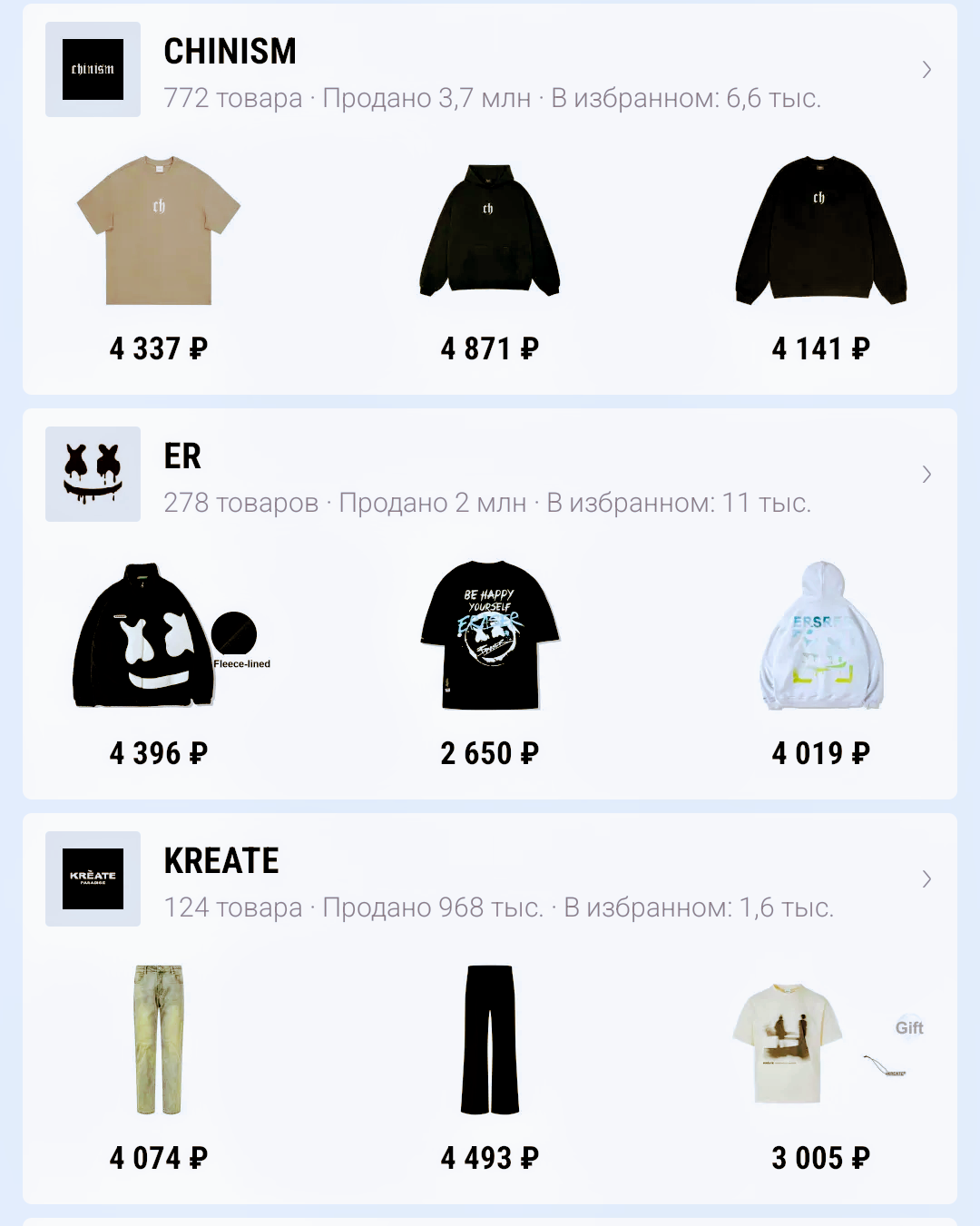 По факту оказалось что выбор брендов той же обуви минимальный, а некоторые вообще малоизвестные китайские. Сразу на ум пришел другой китайский бренд - Eblan. А вот бренды одежды.