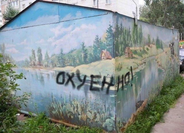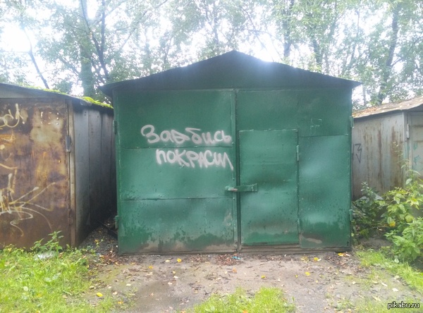 Дык, сам хозяин после того как покрасил гараж, не сдержался и написал сам от переполнения эмоций.