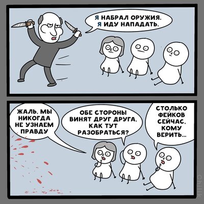 Я скажу честно, не хочу дальше продолжать разговор. Если подвести черту, то моя позиция будет звучать такв современном инфополе нельзя верить никому
