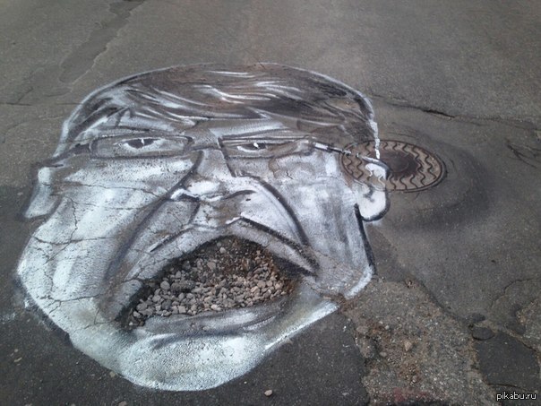 2713 Bavarec1 В Рязани о проблеме дорог решили намекнуть таким образом 10 лет назад Кстати это мэр)) Яма Мэр Креатив Рязань