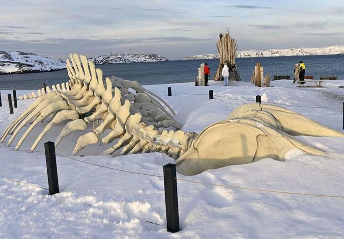 - Китов в этом году много, - рассказывают снегоходчики, - как зашли в ноябре, так и не уходят. Нравится, наверное, когда к ним такое внимание туристов.
