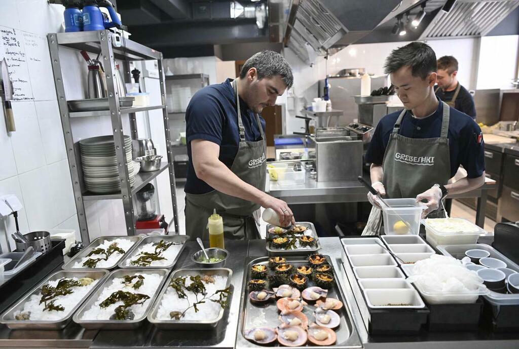 Практически все териберские рестораны делают ставку на арктическую кухню: уха из трески, крабы, гребешки, икра морских ежей. Морепродукты закупают у местных рыбаков, но чаще приходится ехать за ними в Мурманск. Как в эти дни, когда штормило и в море было не выйти.