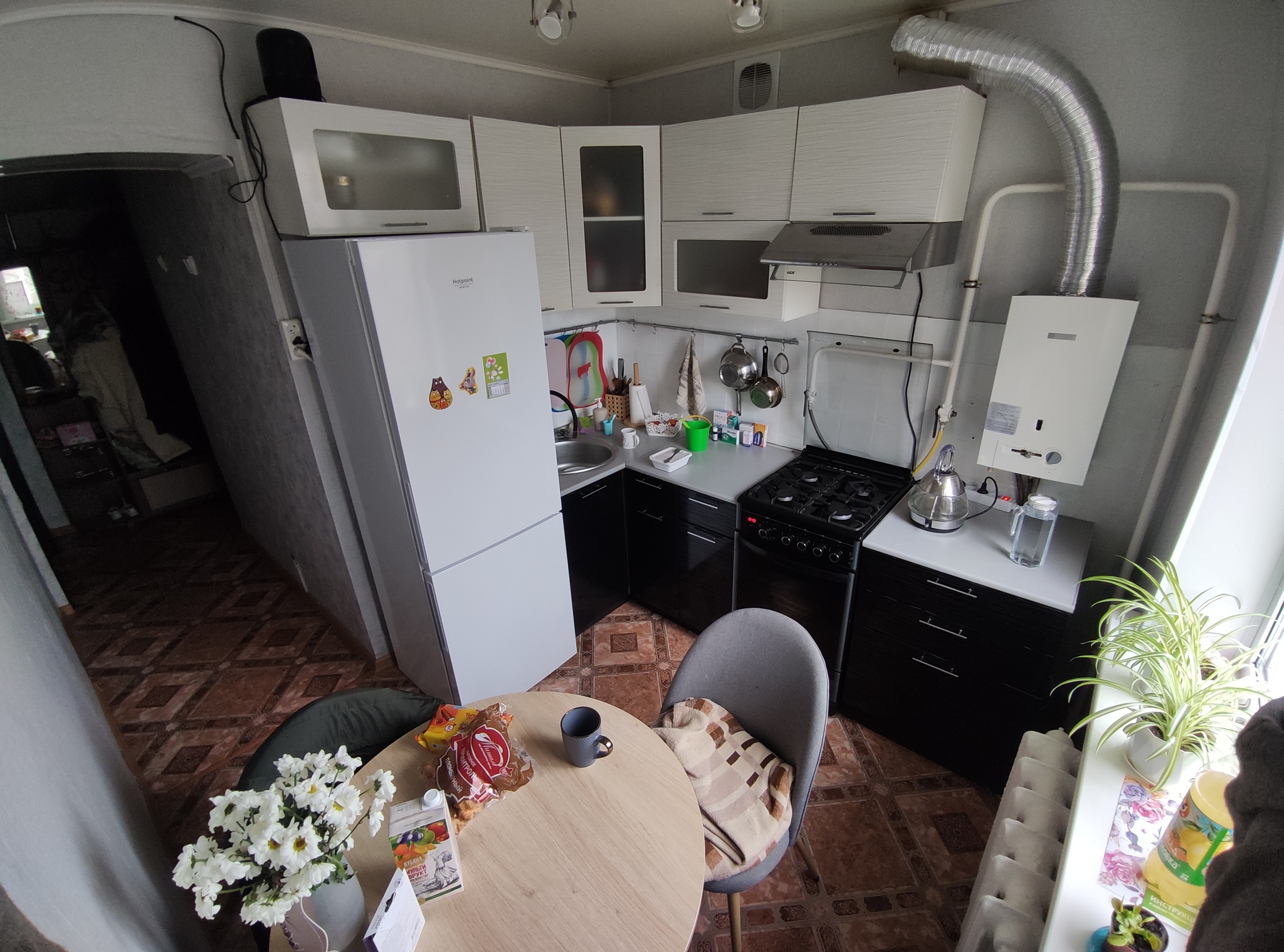 Пока это выглядит так. Также на кухне я временно обклеила стены панелями, чтоб было приятно глазу.
